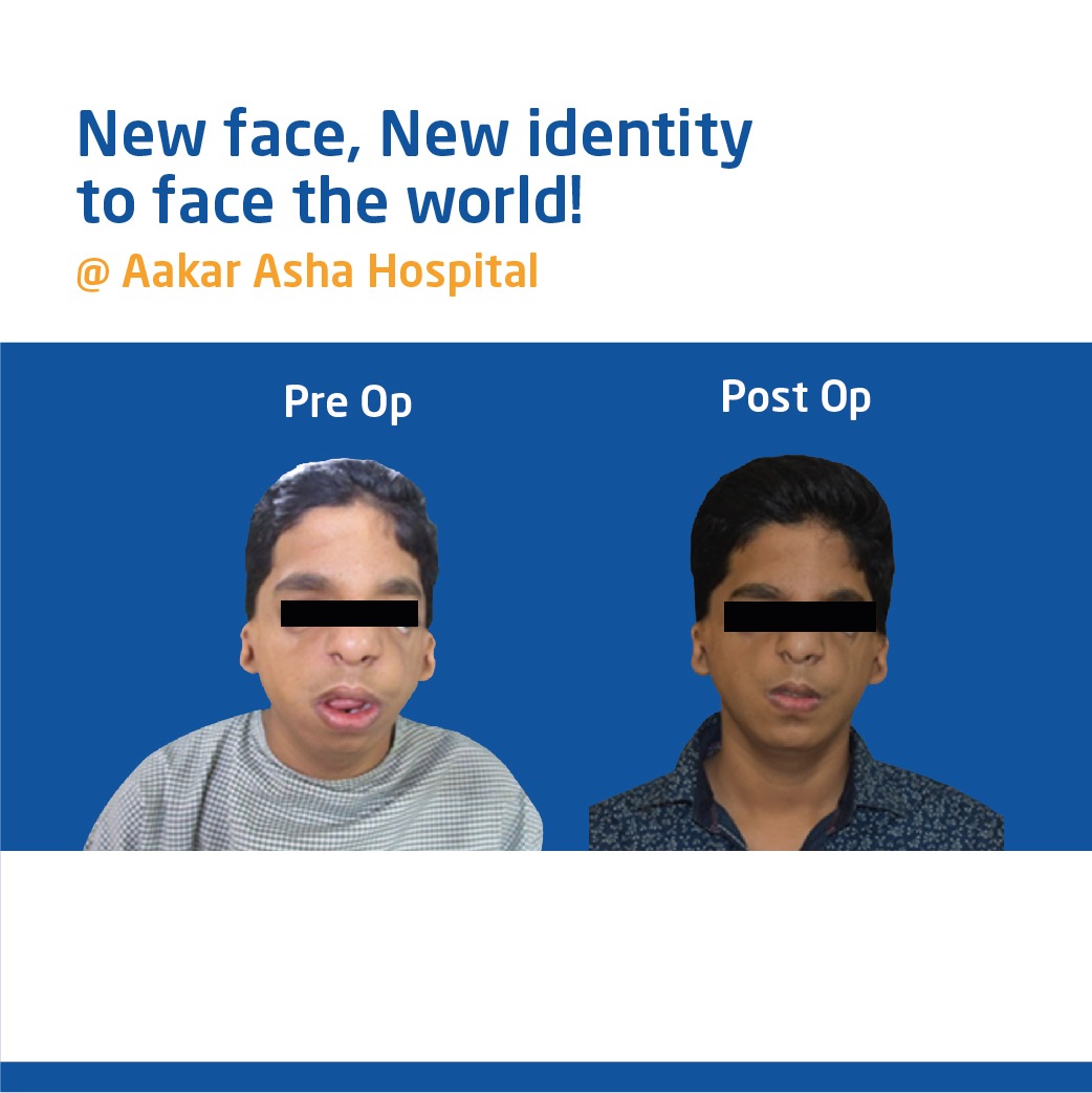Within 2 days of his arrival at Aakar Asha Hospital, he had his blood tests, 3D CT scans, dental models for mock surgery and interdisciplinary team planning. On the third day of his arrival he underwent surgery to correct the open bite deformity and chin position as the first of a 3 stage correction of his multiple facial deformities.